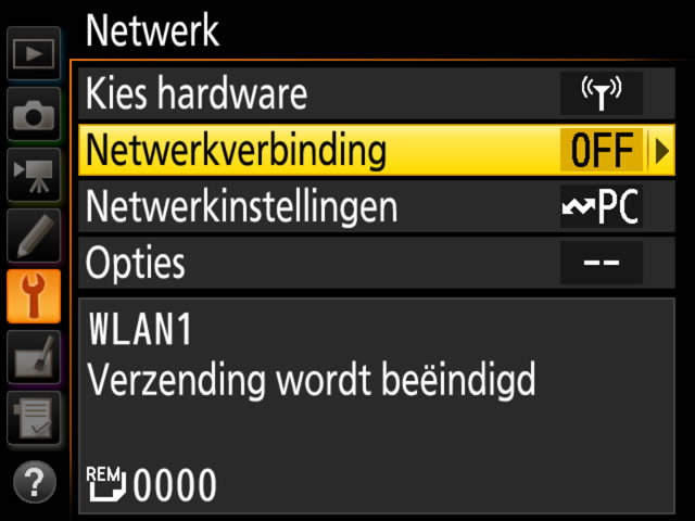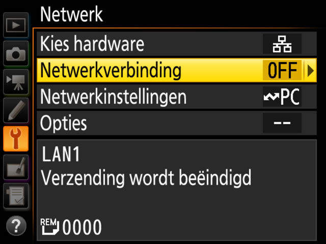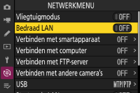 - Z9: selecteer OFF voor Bedraad LAN in het netwerkmenu van de camera.