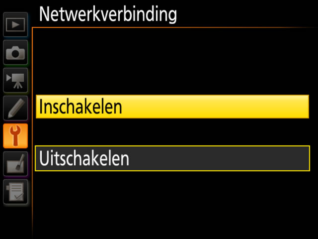Markeer Inschakelen en druk rechts op de multi-selector om verbinding te maken met het netwerk.