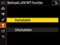 Selecteer Inschakelen voor Bedraad LAN/WT > Bedraad LAN/WT-functies in het camera-instellingenmenu.
