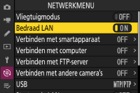 - Z9: selecteer ON voor Bedraad LAN in het netwerkmenu van de camera.