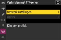Selecteer Verbinden met FTP-server > Netwerkinstellingen in het netwerkmenu van de camera.