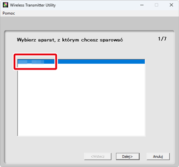 Po potwierdzeniu, że nazwa aparatu wyświetlona w kroku 1 znajduje się na liście, kliknij Dalej.