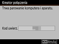 Zanotuj kod uwierzytelniający wyświetlony na monitorze aparatu.