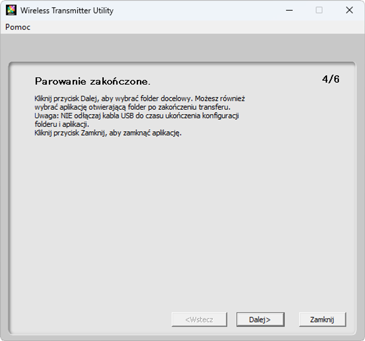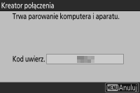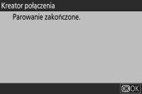 Program Wireless Transmitter Utility automatycznie sparuje aparat z komputerem. Po zakończeniu parowania w aparacie i w programie Wireless Transmitter Utility wyświetlone zostaną potwierdzające to komunikaty. Naciśnij przycisk OK na aparacie i kliknij Dalej w programie Wireless Transmitter Utility.
