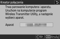 Postępuj zgodnie z poleceniami wyświetlanymi na ekranie, aby nawiązać połączenie i uruchomić program Wireless Transmitter Utility. Program Wireless Transmitter Utility automatycznie sparuje aparat z komputerem.