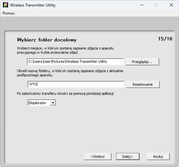 - Windows: \Users\„nazwa użytkownika”\Pictures\Wireless Transmitter Utility