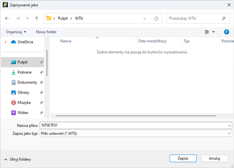 Kliknij Zapisz ustawienia w kroku 12, aby zapisać profile sieciowe w formacie „wts” lub „txt”. Aby wczytać zapisane profile, kliknij Załaduj plik ustawień w kroku 3, kliknij Przeglądaj, a następnie wybierz żądany plik.