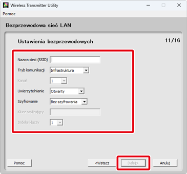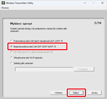 Wybierz Bezprzewodowa sieć LAN (WT-5/WT-6/WT-7) i kliknij Dalej.