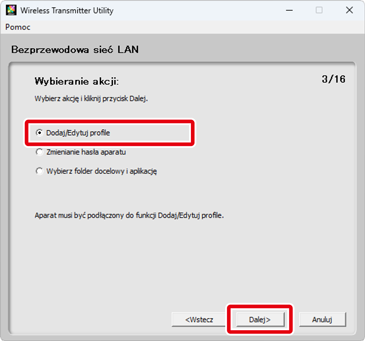 Wybierz Dodaj/Edytuj profile i kliknij Dalej.