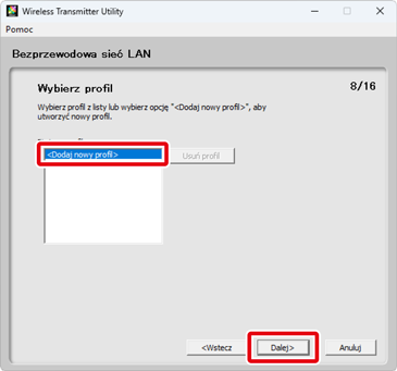 Wybierz Dodaj nowy profil i kliknij Dalej.