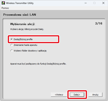 Wybierz Dodaj/Edytuj profile i kliknij Dalej.