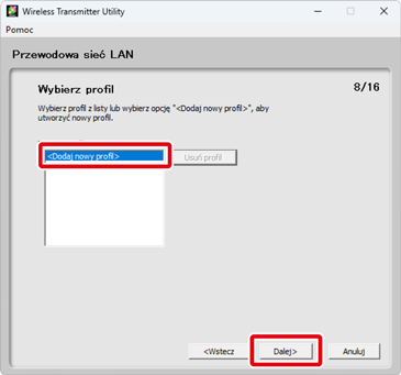 Wybierz Dodaj nowy profil i kliknij Dalej.