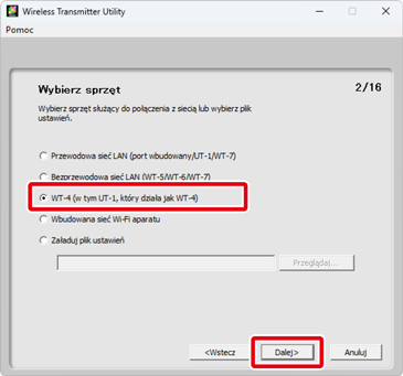 Wybierz WT-4 (w tym UT-1, który działa jak WT-4) i kliknij Dalej.
