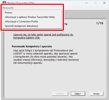 - Informacje o aplikacji Wireless Transmitter Utility (tylko Windows)