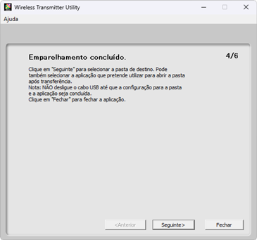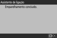 O Wireless Transmitter Utility emparelha automaticamente a câmara e o computador. Quando o emparelhamento estiver concluído, a câmara e o Wireless Transmitter Utility exibirão as mensagens para esse efeito; prima o botão OK na câmara e clique em Seguinte no Wireless Transmitter Utility.