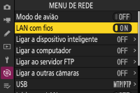 - Z9: selecione ON para LAN com fios no menu de redes da câmara.