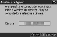 Seguir as instruções no ecrã para estabelecer uma conexão e iniciar o Wireless Transmitter Utility. O Wireless Transmitter Utility emparelha automaticamente a câmara com o computador.
