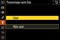 Marque Transmissor sem fios e prima o multisseletor para a direita para ver as opções.