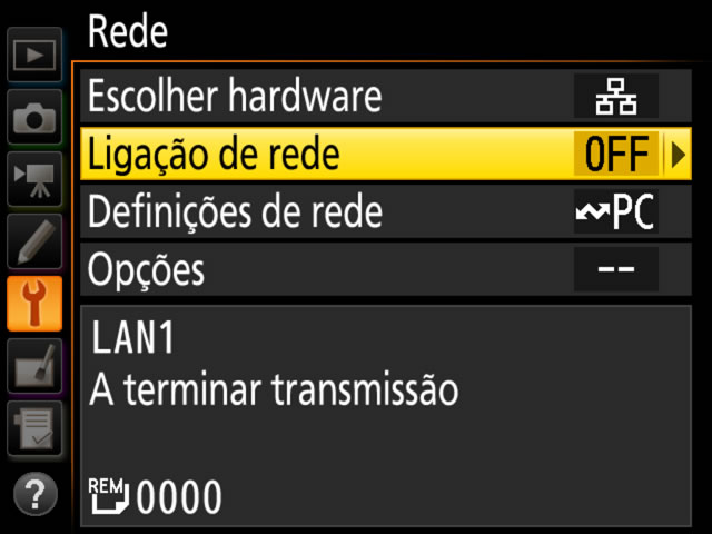 - Z9: selecione OFF para LAN com fios no menu de redes da câmara.