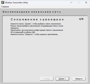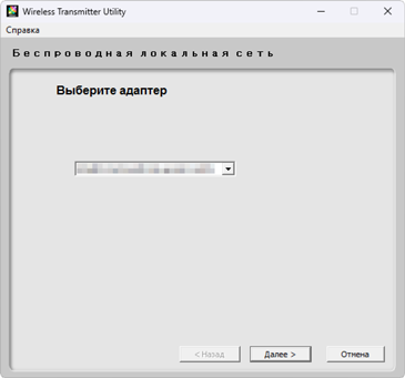 Следуя инструкциям на экране, установите соединение и запустите Wireless Transmitter Utility. При появлении запроса выберите адаптер беспроводной локальной сети в раскрывающемся меню Wireless Transmitter Utility.