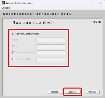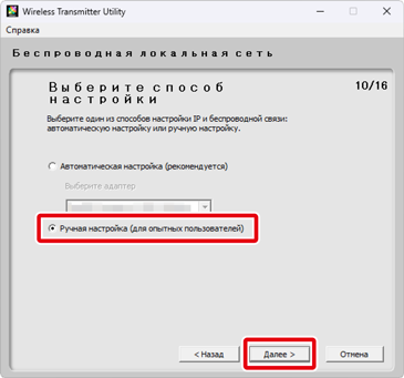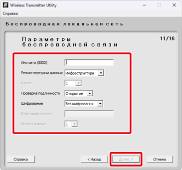 После запуска Wireless Transmitter Utility щелкните Далее.