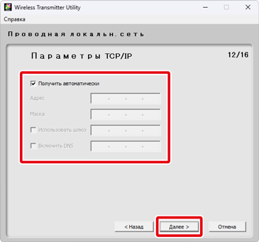 После запуска Wireless Transmitter Utility щелкните Далее.
