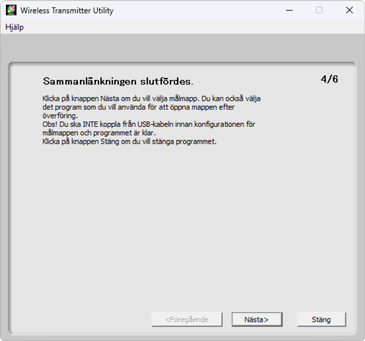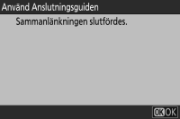 Wireless Transmitter Utility parkopplar automatiskt kameran och datorn. När parkopplingen är slutförd visar kameran och Wireless Transmitter Utility meddelandena om detta; tryck på OK-knappen på kameran och klicka på Nästa i Wireless Transmitter Utility.
