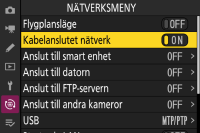 - Z9: Välj ON för Kabelanslutet nätverk i kamerans nätverksmeny.