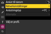 Skapa en ny nätverksprofil med hjälp av Anslut till datorn > Nätverksinställningar i nätverksmenyn.