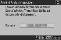 Följ instruktionerna på skärmen för att upprätta en anslutning och starta Wireless Transmitter Utility. Wireless Transmitter Utility sammanlänkar automatiskt kameran med datorn.