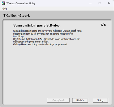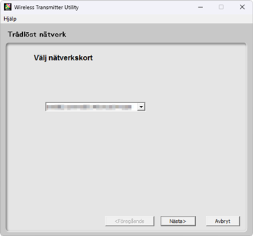 Följ instruktionerna på skärmen för att upprätta en anslutning och starta Wireless Transmitter Utility. Vid uppmaning, välj en adapter för trådlöst nätverk från rullgardinsmenyn i Wireless Transmitter Utility.