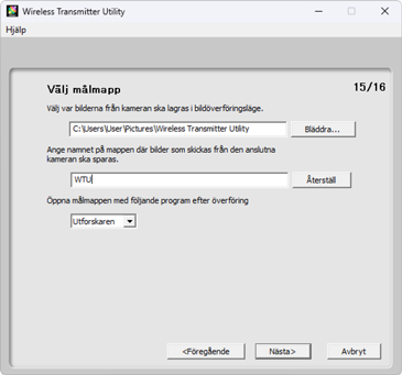 - Windows: \Users\“användarnamn”\Pictures\Wireless Transmitter Utility