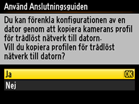 Detta alternativ är inte tillgängligt om Direktanslutning (ad hoc) har valts med kamerans anslutningsguide.
