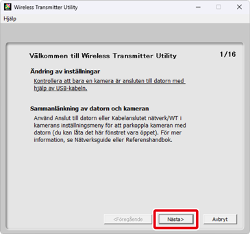 Klicka på Nästa när Wireless Transmitter Utility startar.