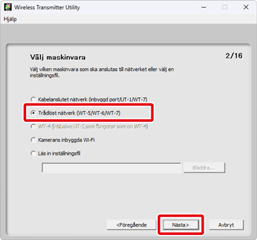 Välj Trådlöst nätverk (WT-5/WT-6/WT-7) och klicka på Nästa.