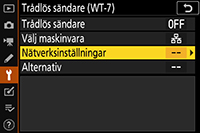 Välj Trådlös sändare (WT-7) > Nätverksinställningar i kamerans inställningsmeny.