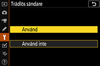 Markera Trådlöst nätverk och tryck multiväljaren åt höger för att återgå till Trådlös sändare (WT-7)-menyn.