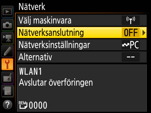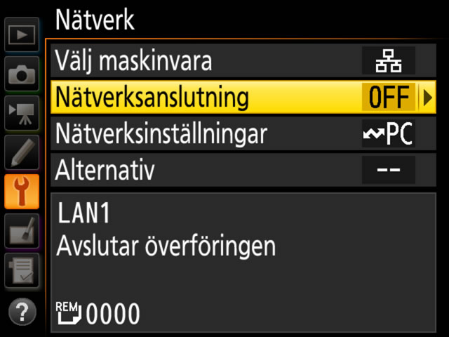- Z9: Välj OFF för Kabelanslutet nätverk i kamerans nätverksmeny.