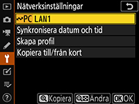 Markera Nätverksinställningar och tryck multiväljaren åt höger för att se en lista över nätverksprofiler.