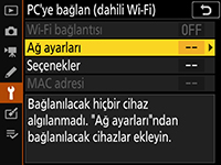 - Z7II / Z6II / Z7 / Z6 / Z5 / Z50 / Z30 / Zfc / D780: Ayarlar menüsü > PC’ye bağlan > Ağ ayarları