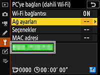 Bir bağlantı kurulduğunda fotoğraf makinesinde ağ profili adı (varsayılan olarak ağ SSID’si) yeşil görüntülenecektir.