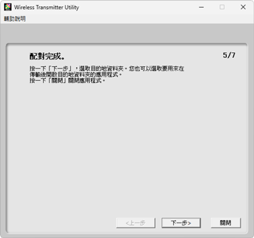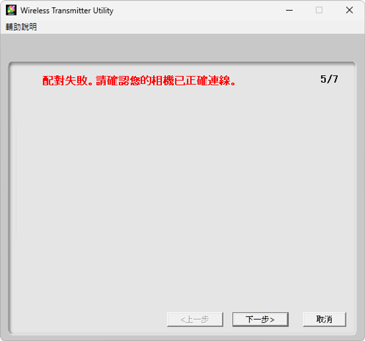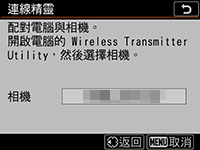 Wireless Transmitter Utility 將自動為相機和電腦配對。配對完成後,相機和 Wireless Transmitter Utility 中將顯示相應的資訊;按下相機上的 OK 按鍵並在 Wireless Transmitter Utility 中按一下 下一步。