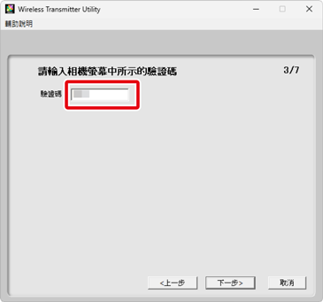 在 Wireless Transmitter Utility 中輸入驗證碼並按一下 下一步。