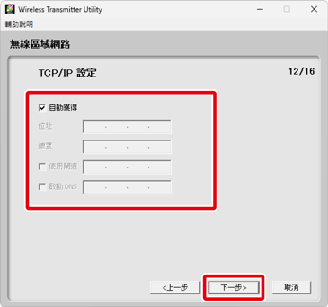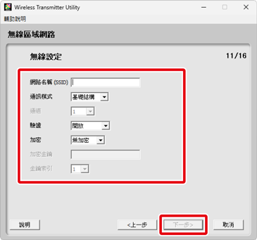 Wireless Transmitter Utility 啟動後,按一下 下一步。