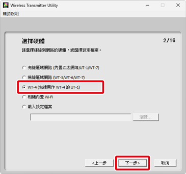 選擇 WT-4 (包括用作 WT-4 的 UT-1) 並按一下 下一步。