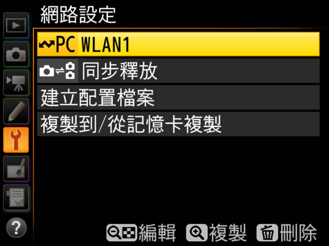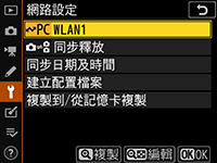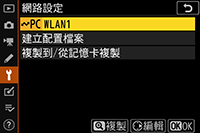 反白顯示一個配置檔案,然後向右按下多重選擇器返回 有線區域網路/WT 選單。等待相機建立連線。