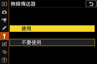 反白顯示 無線傳送器 並向右按下多重選擇器查看選項。